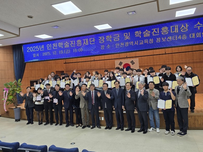 [인천 세계타임즈=심하린 기자] 인천광역시교육청(교육감 도성훈)은 재단법인 인천학술진흥재단(이사장 전태일)과 함께 19일 ‘2025 인천학술진흥재단 장학금 수여식’을 열고, 초·중·고 학생 43명에게 장학금을 수여했다.