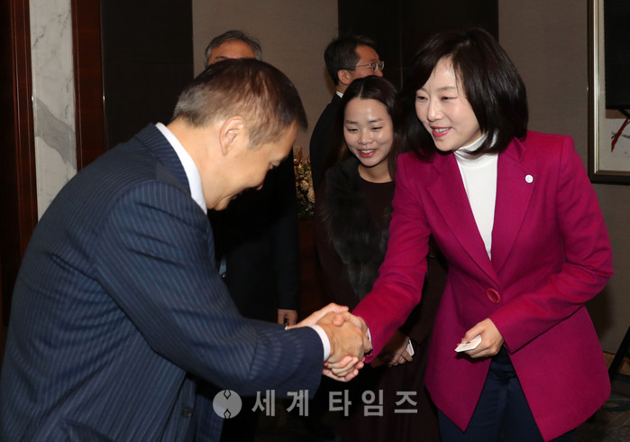 조윤선 문화체육관광부 장관이 16일 중국 베이징 케리호텔에서 중국 방한 주요 송객여행사 대표들과 인사를 하고 있다. 2016.12.16. (사진=문화체육관광부 제공)