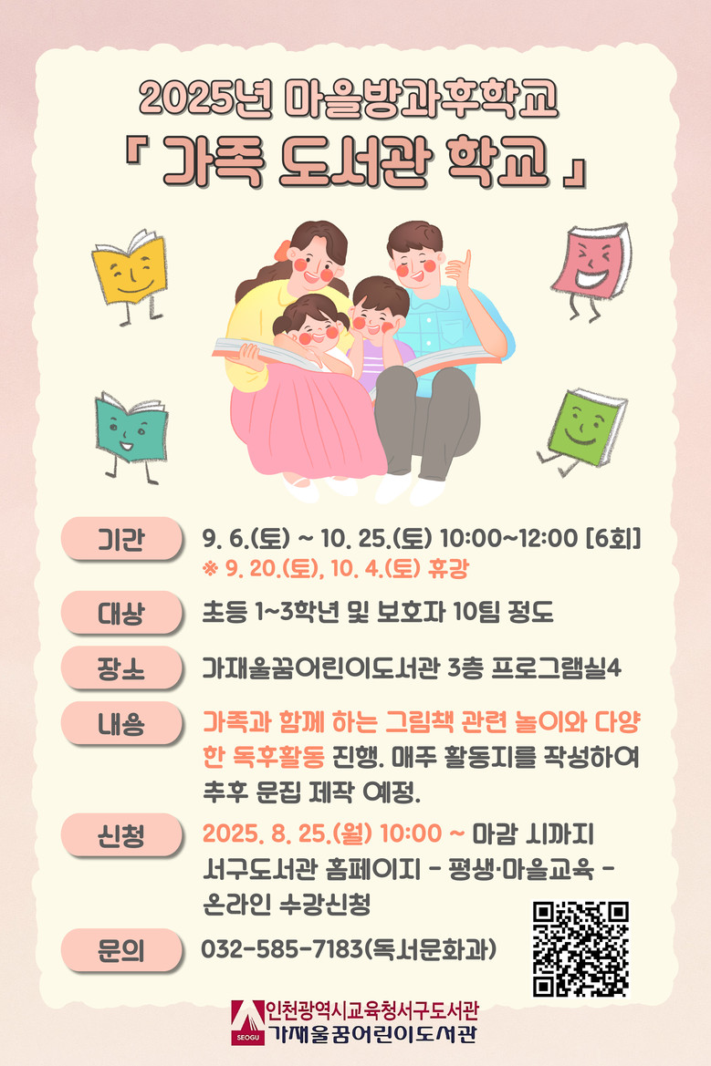 자세한 내용은 서구도서관 누리집(http://lib.ice.go.kr/seogu)을 참고하거나 독서문화과(☎032-585-7183)로 문의하면 된다.