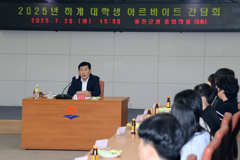 [옹진군 세계타임즈=심하린 기자] 옹진군(군수 문경복)은 지난 29일, 옹진군청 중회의실에서 본청 및 보건소, 농업기술센터 등에 배치되어 근무 중인 하계 아르바이트 대학생 43명과 간담회를 개최했다고 밝혔다.