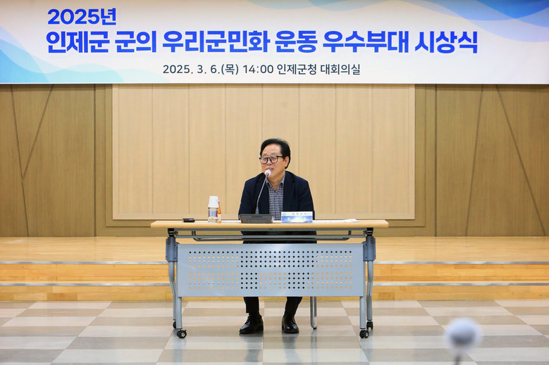 [인제군 세계타임즈=김민석 기자] 인제군은 지난 3월 6일(목) 인제군청 대회의실에서 ‘인제군 군(軍)의 우리군민화 운동 우수부대 시상식’을 개최했다.
