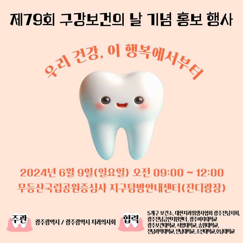 이번 홍보 행사는 광주시와 5개 자치구 보건소, 광주시치과의사회, 치과위생사협회 광주전남지회, 8개 대학교 치과대학 및 치위생학과 학생 등 100여명이 참여할 예정이다.