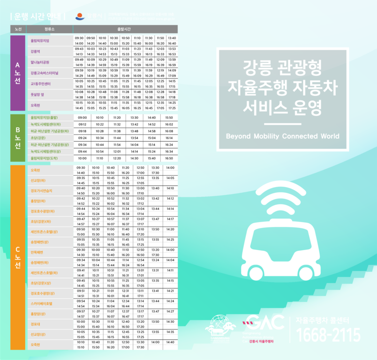 새롭게 추가되는 노선은 강릉역-버스터미널-오죽헌-올림픽뮤지엄을 순환하는 노선으로 KTX나 시외, 고속버스를 타고 강릉시를 방문하는 관광객들이 바로 자율주행차를 탑승할 수 있도록 운행된다.