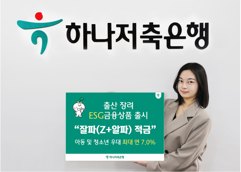 ‘잘파(Z+알파)세대’는 Z세대와 알파세대의 합성어로 1990년대 중반 이후 태어난 세대를 통칭하는 말이다. 이번에 출시한 하나저축은행의 『잘파(Z+알파) 적금』은 아동‧청소년 및 그 부모에게 우대 상품을 제공함으로써 출산 장려에 기여하고, 미래의 주역인 아이들에게 올바른 저축습관도 길러주는 ESG 특화 금융상품이다.