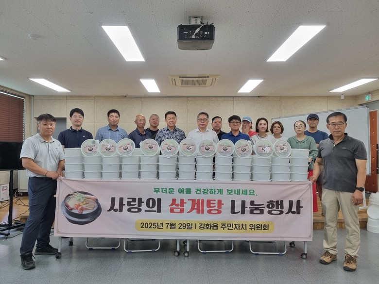 [강화군 세계타임즈=심하린 기자] 강화군 강화읍 주민자치위원회(회장 이광수)는 지난 29일, 삼복더위를 맞아 관내 어려운 이웃을 위한 ‘사랑의 삼계탕 나눔 행사’를 개최했다.