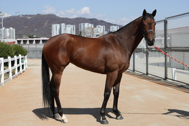 전년도 씨수마 순위 5위에 랭크되며 신예 씨수마로서 이름을 떨치고 있는 ‘머스킷맨’의 자마다. 초반 빠른 스피드로 선두를 차지하고 끌어나가는 선행마다. 그 탓에 지난 루나Stakes에서는 비슷한 주행습성을 가진 ‘라온더스퍼트’와의 선두다툼에 체력을 소진하고 막판 ‘골든파워’에 추월당하며 우승을 놓쳤다. 하지만 가장 바깥쪽인 14번 게이트에서 출발했고 마지막까지 탄력적인 걸음을 유지했음을 고려하면 이번 코리안오크스 우승 가능성은 상당하다. 아직 1800m 경험은 없지만 지난 3월 1700m 경주에 출전해 여유로운 1위를 차지함으로써 중장거리 가능성을 보여주기도 했다. 이번에야말로 작년 7월 데뷔한 이준철 조교사에게 대상경주 첫 우승을 안겨줄 수 있을지 관심이 모인다.
