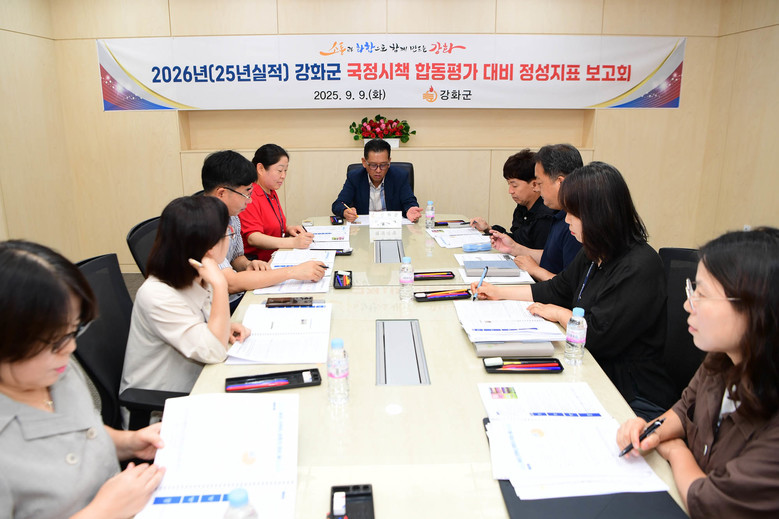 [강화군 세계타임즈=심하린 기자] 강화군(군수 박용철)은 지난 9일 국정시책 합동평가 대비 정성지표 추진상황 보고회를 열고 실적 점검과 향상 방안을 모색했다.