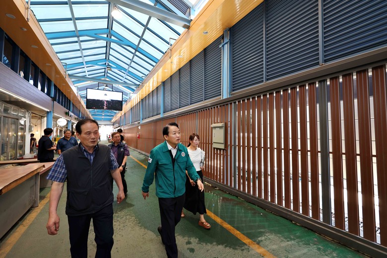 김찬진 청장은 폭염으로 피해가 우려되는 시장 상인들과 방문객들을 만나 안부를 묻고, 폭염 대응 물품과 냉방 장비 운영 현황 등을 점검했다.