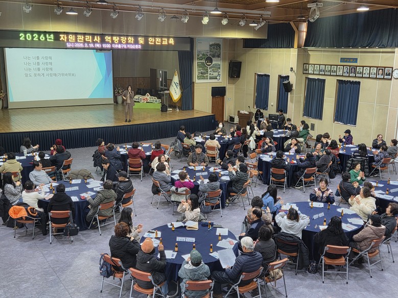 이번 교육은 오는 3월 ‘2026년 미추 자원순환 가게’ 본격 운영을 앞두고 선발된 자원관리사 69명이 참석한 가운데 진행됐다. 교육 과정은 ▲식전 힐링 체조를 시작으로 ▲자원관리사 직무 전문 교육 ▲현장 작업 안전교육 등 다채로운 프로그램으로 구성됐다.