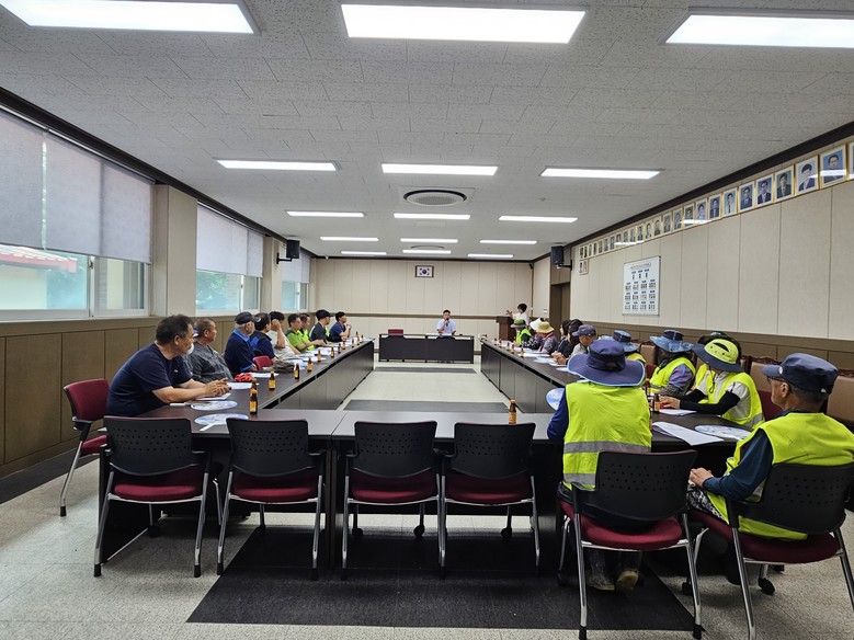 이번 교육은 폭염으로 인한 온열질환 예방법과 교통안전 등 야외 근무가 많은 현업근로자들에게 꼭 필요한 안전 수칙을 위주로 이뤄졌으며, 교육 후에는 부채, 얼음물, 교통안전을 위한 작업 표지판 등도 배부했다.