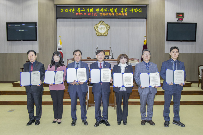 [중구 세계타임즈=심하린 기자] 인천광역시 중구의회(의장 이종호)는 3월 28일 청렴실천 서약식을 개최하여, 공정하고 투명한 의정활동을 통해 신뢰받는 지방의회로 거듭날 것을 다짐했다.