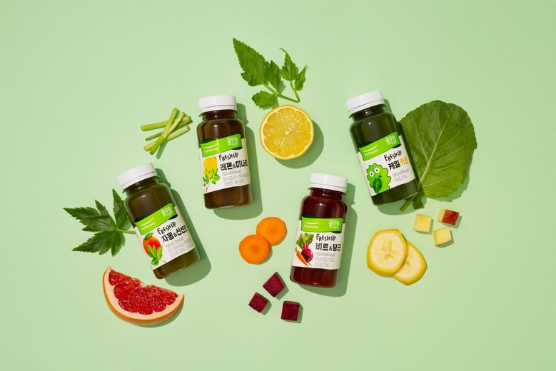 ‘프레시업 자몽&신선초’는 국산 유기농 신선초에 자몽, 배, 오렌지를 더해 상큼하고 깔끔한 맛을 살린 제품이다. ‘프레시업 레몬&미나리’는 국산 유기농 돌미나리에 레몬, 파인애플, 솔잎을 넣어 채소 섭취는 물론 음용 시 청량감까지 느낄 수 있다.