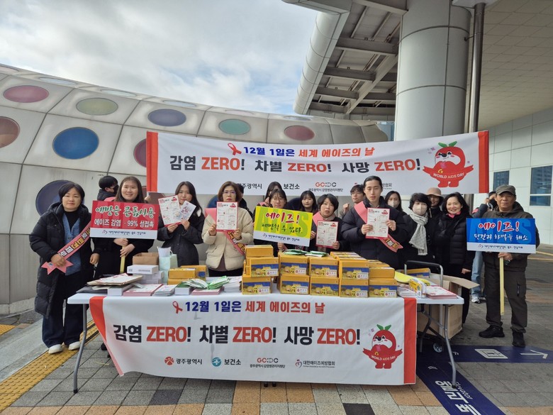 [광주 세계타임즈=손권일 기자] 광주광역시(시장 강기정)는 제37회 세계 에이즈의 날(12월 1일)을 앞두고 29일 광주송정역에서 에이즈 예방 캠페인을 펼쳤다. 이번 캠페인은 시민에게 에이즈의 날의 의미를 알리고, 에이즈에 대한 올바른 지식을 전달해 편견과 차별을 줄이기 위해 마련됐다.