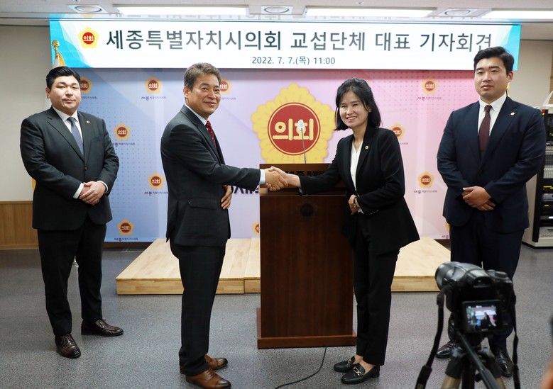 [세계타임즈=세종 이채봉 기자] 세종특별자치시의회(의장 상병헌) 교섭단체 대표단은 7일 의회청사 대회의실에서 기자회견을 열고 “여야 협치의 정신으로 시민과 약속했던 주요 현안을 해결하기 위해 힘을 모으겠다”고 밝혔다.