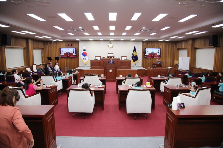 무안군의회 3층 본회의장에서 진행된 의회체험활동 행사는 김경현 의장을 비롯해 무안군의회 소속 의원과의 만남과 의회시설 견학, 홍보영상 시청, 기초의회 기능과 역할 설명 등의 순으로 진행됐다.