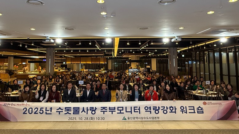 [세계타임즈=울산 이호근 기자] 울산시상수도사업본부는 28일 오전 10시 울산시티컨벤션에서 ‘2025년 수돗물사랑 주부감시자(모니터) 역량강화 연찬회(워크숍)’를 개최한다고 밝혔다.