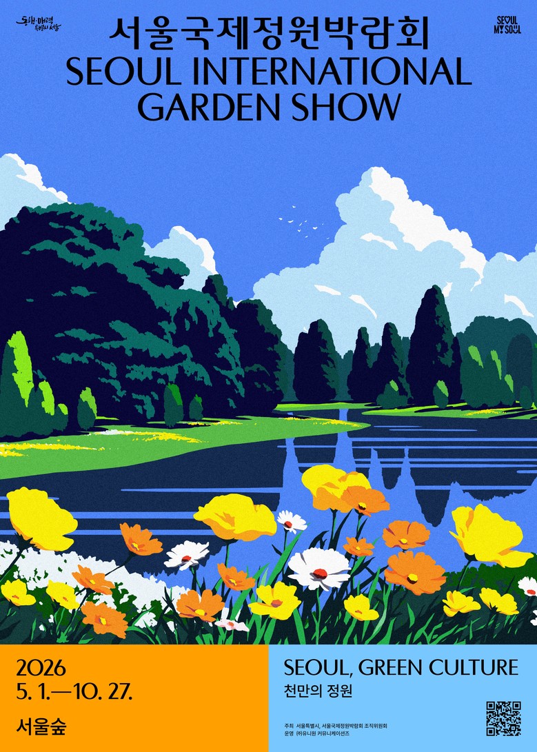 2026.1.21.(수) 박람회 개막 D-100을 맞아 국제정원박람회의 일관된 아이덴티티를 담은 공식 포스터를 공개하였으며, 올해 포스터는 서울색(모닝옐로우)과 박람회의 메인키컬러(2026 SIGS-SkyBlue)를 조합하고 도시문화와 연결된 정원을 감각적으로 표현한 일러스트레이션으로 새로운 시각적인 경험을 보여준다.
