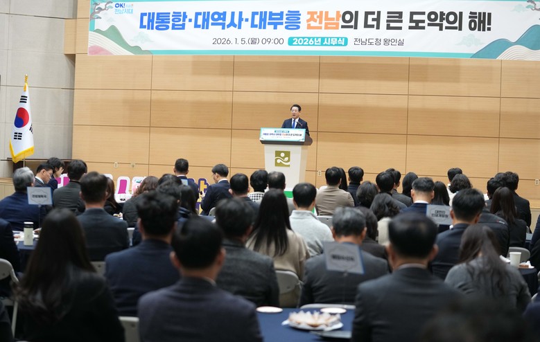 김영록 지사는 “지난해 12·3 헌정 위기를 오월 정신으로 이겨내 국민주권정부를 탄생시켰고, 사상 최초 국비 10조 원 시대를 열었으며, 글로벌 초일류 기업이 몰려드는 ‘대한민국 AI・에너지 수도 전남’으로 부상하는 등 전남의 운명을 바꾸는 황금빛 대도약의 길을 열었다”고 평가했다.