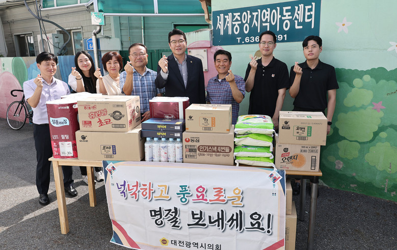 [대전 세계타임즈=이채봉 기자] 대전시의회 행정자치위원회(위원장 정명국)는 추석을 앞두고 동구 성남동 세계중앙지역아동센터를 찾아 지역 청소년들을 격려하고 위문품을 전달하며 소외된 계층에 따뜻한 마음을 나눴다.