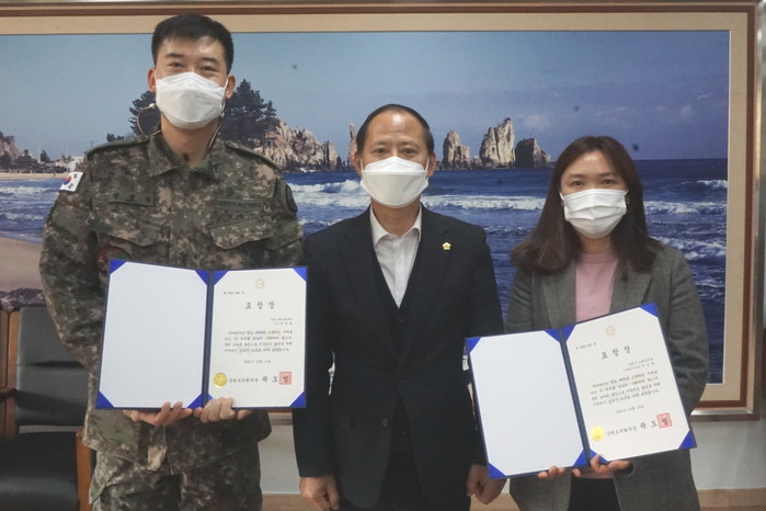 [동해시=세계타임즈 김민석 기자] 동해시의회(의장 김기하)는 22일 오전 10:00 동해시의회 의장실에서 2021년 연말 강원의정발전 유공 공무원 강원도의회 의장 표창을 육군 제2138부대 소속 박범철 상사와 동해시의회 강은희 주무관에게 동해시의회 김기하 의장이 전수하였다고 밝혔다.