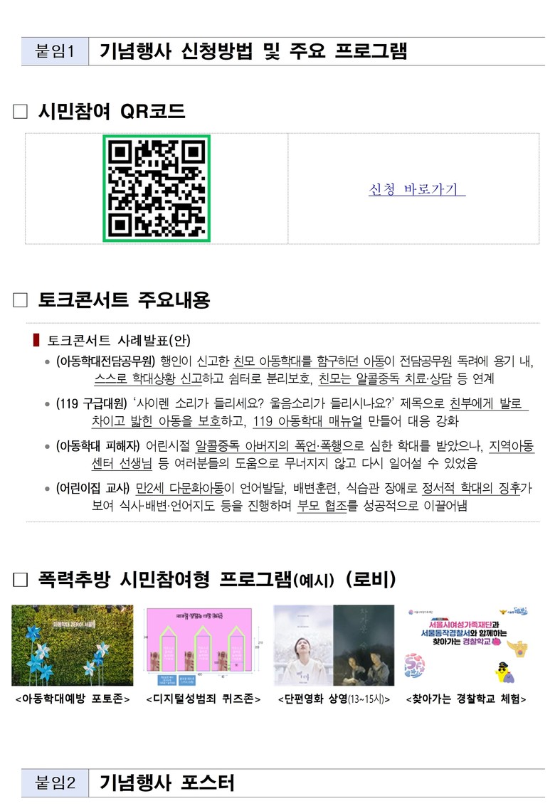 - 27일(목) 서울여성플라자 ‘아동학대 예방의 날 기념행사’ 개최, 시민 등 200여 명 참석