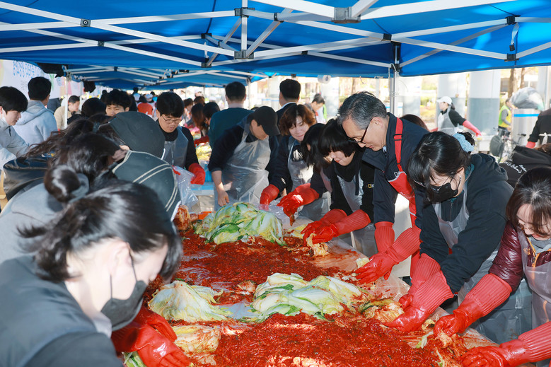 이날 자원봉사자들은 쌀쌀한 날씨에도 불구하고 정성 들여 김장 만들기에 동참했다. 이날 만들어진 김치는 55톤가량으로 저소득층, 독거노인 등 어려운 이웃 5,500세대에 각 10kg씩 전달할 계획이다.