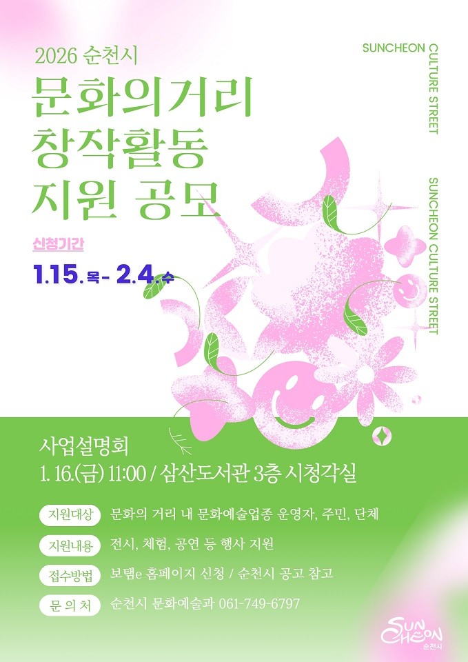 기타 자세한 사항은 순천시 홈페이지 공고문을 참고하거나 문화예술과 (061-749-6797)로 문의하면 된다.