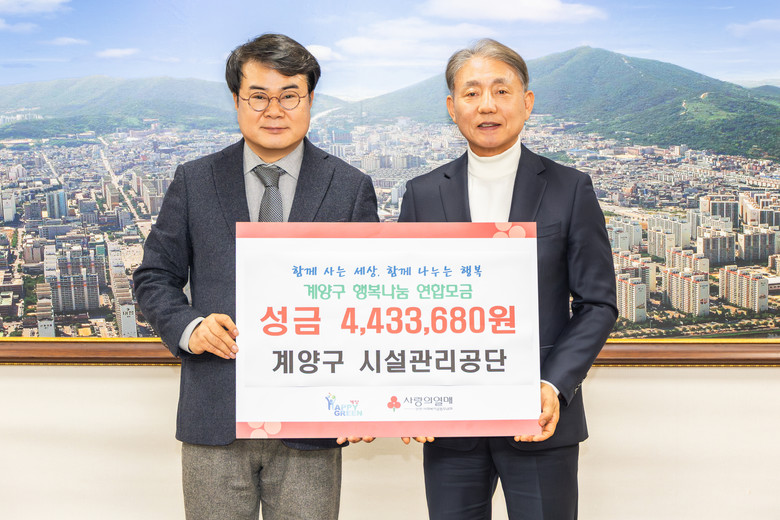 이번 성금은 계양구시설관리공단 임직원들이 자발적으로 참여해 마련한 것으로, 사회복지공동모금회를 통해 지역 내 취약계층 지원에 사용될 예정이다.