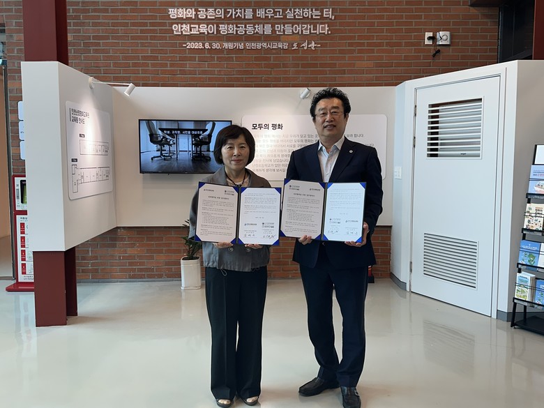 [인천 세계타임즈=심하린 기자] 인천광역시교육청난정평화교육원(원장 김명순)은 13일, (사)한중문화협회 인천지회 및 인천주니어클럽(회장 오승한)과 평화교육 활성화와 상생 협력을 위한 업무협약(MOU)을 체결하였다.
