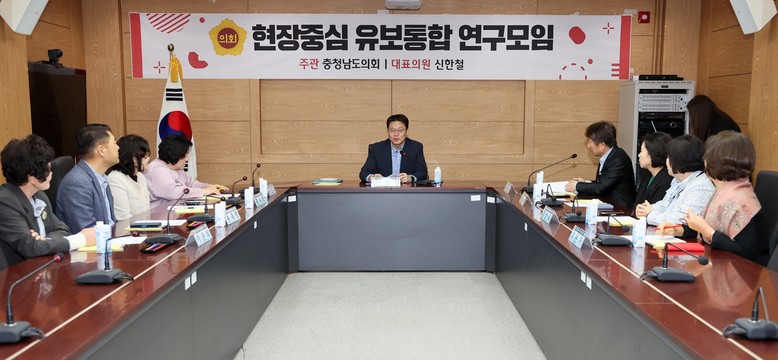 이날 회의에는 연구모임 대표인 신한철 의원(천안2·국민의힘)을 비롯해, 연구모임 회원과 관계 공무원, 연구용역 수행 연구진 등 10여 명이 참석했다. 회의는 김경희 박사(책임연구원)의 「충남지역 유보통합 현장 의견 및 요구조사 연구」 최종 보고에 이어 질의응답 및 자유토론 순으로 진행됐다.