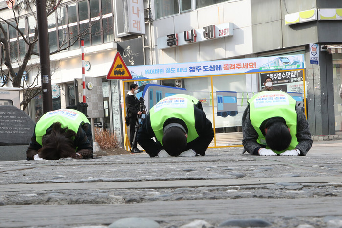 [충북=세계타임즈 이현진 기자] 충북도의회 박문희 의장은 16일 제4차 국가철도망 구축계획에 청주도심 통과 광역철도망을 반영하기 위한 삼보일배 챌린지에 첫 주자로 나섰다.