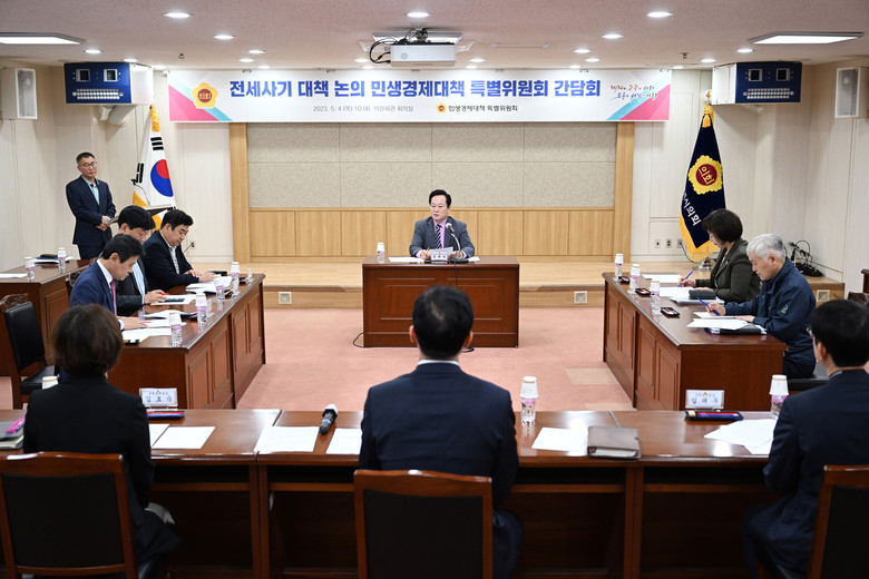 5월 4일(목) 시의회 의원회관 회의실에서 열린 간담회에는 윤태한 민생경제대책 특별위원회 위원장을 비롯하여, 강달수 부위원장, 김재운‧문영미‧박종율‧이승우 특별위원회 위원 및 해당 업무를 소관하는 건축주택국장을 비롯한 관계 공무원이 참석하였다.