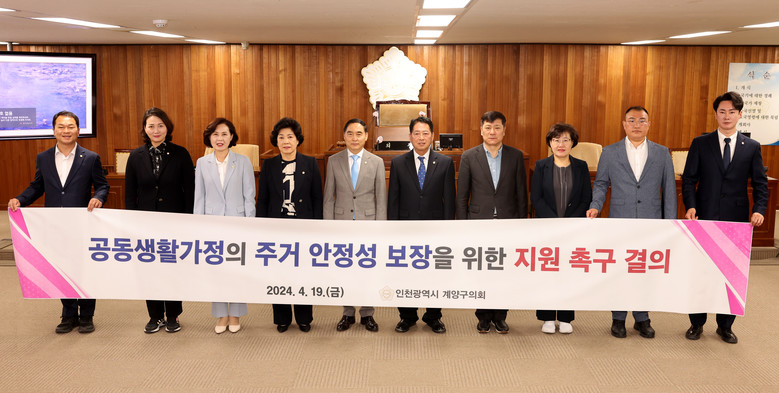 [계양구 세계타임즈=심하린 기자] 인천 계양구의회(의장 조양희)는 19일 제249회 임시회 제2차 정례회에서 여재만 의원이 대표 발의한‘공동생활가정의 주거 안정성 보장을 위한 촉구 결의안’이 의원 만장일치로 채택됐다.