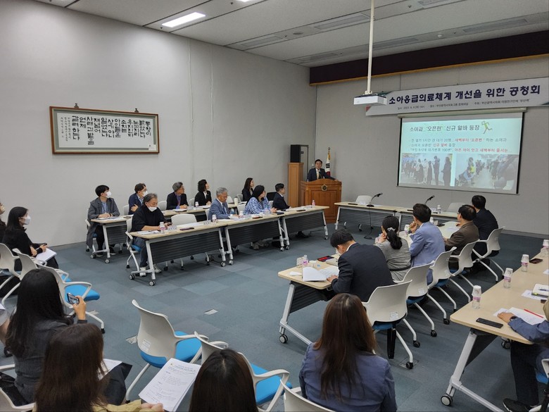 공청회는 소아응급의료체계 개선과 법적 지원 근거를 마련하기 위한 “부산광역시 응급의료에 관한 조례” 개정안에 관한 전문가들의 의견 수렴과 패널토론의 형태로 진행되었다.