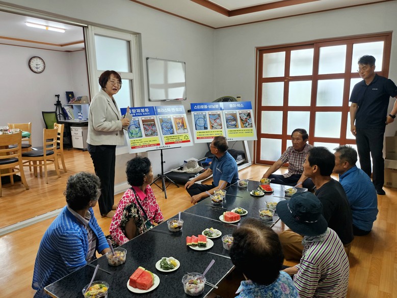 양사면은 이번 4개소 마을회관을 시작으로 앞으로 남은 8개소 마을회관에도 순차적으로 팥빙수 나눔과 분리수거 교육을 이어갈 계획이다.