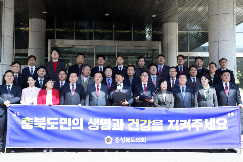| ▲ 청주국제공항민간전용활주로보장없는전투기추가배치반대성명서발표_의회현관 |