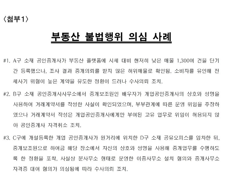 대단지 아파트에서는 허위 매물, 무등록자 중개, 이중계약서 작성 여부 등 불법 중개행위를 집중 점검할 예정이다.