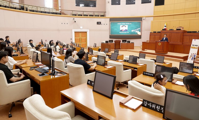 학생들은 본회의장 등 의회 시설을 둘러보고 의정 활동 영상을 시청하며 의회와 시의원의 역할, 회의 진행 과정 등 의회 전반에 대한 설명을 청취했다. 학생들은 직접 의장석에 앉아 의사봉을 두드려보고 발언대에 서보는 등 체험 기회도 가졌다.