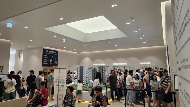 실제 견본주택 앞은 무더운 날씨에도 불구하고 입장을 기다리는 방문객들로 긴 대기행렬이 이어졌고, 내부에 마련된 상담석은 남녀노소 다양한 연령층의 상담객들로 가득 찼다. 모형도와 유니트 앞 역시 관람객들로 문전성시를 이루는 모습이다.