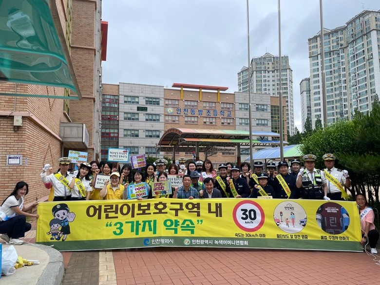 캠페인에는 인천논현경찰서, 녹색어머니연합회, 동방초 학부모회 및 운영위원회, 모범운전자논현지회, 남동구도시관리공단 생활체육팀 등 40여 명이 참여해 어린이들의 안전한 등굣길 조성을 위해 힘을 모았다.