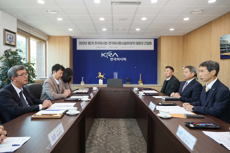 [세계타임즈 = 송민수 기자] 한국마사회(회장 정기환)는 지난 1일 한국마사회시설관리(주)(대표이사 윤각현)와 올 상반기에 이어 두 번째 대표자 간담회를 개최했다. 본 간담회는 모‧자회사 대표자 간에 경영 전반을 아우르는 심도 있는 논의가 이루어지는 자리로, 상호협력과 소통 활성화를 통해 대등한 모‧자회사 관계를 지향한다는 취지로 지난해부터 지속 추진 중이다.