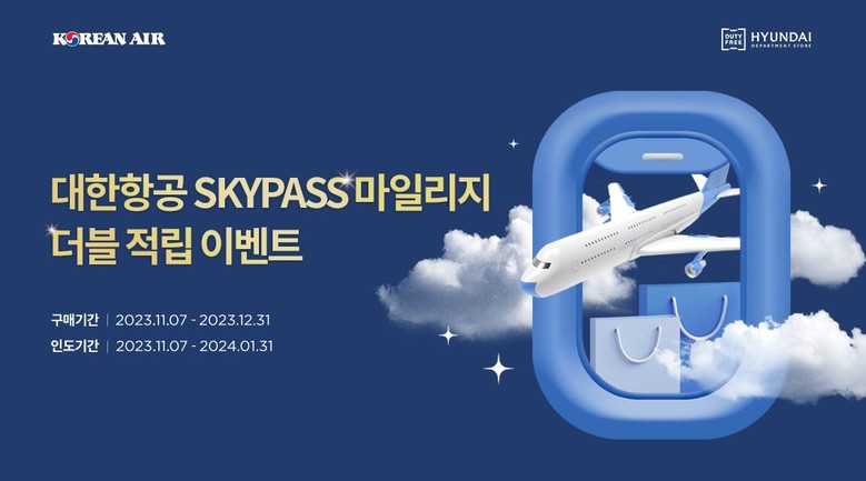 먼저, 현대백화점면세점은 오는 12월 31일까지 대한항공과 공동 기획한 ‘대한항공 스카이패스(SKYPASS) 마일리지 특별 적립 이벤트’를 진행한다. 현대백화점면세점에서 100달러 이상 면세품을 구매한 고객은 구매 금액 5달러당 대한항공 마일리지 기본 1마일과 추가 1마일을 적립받을 수 있다. 인천공항점 등 오프라인점에서 250달러 이상 구매한 고객을 대상으로 마일리지 적립과 키엘 토너, 아틀리에 향수 등 로레알 브랜드 제품으로 구성된 '대한항공 콜라보 어메니티 파우치'를 제공한다.