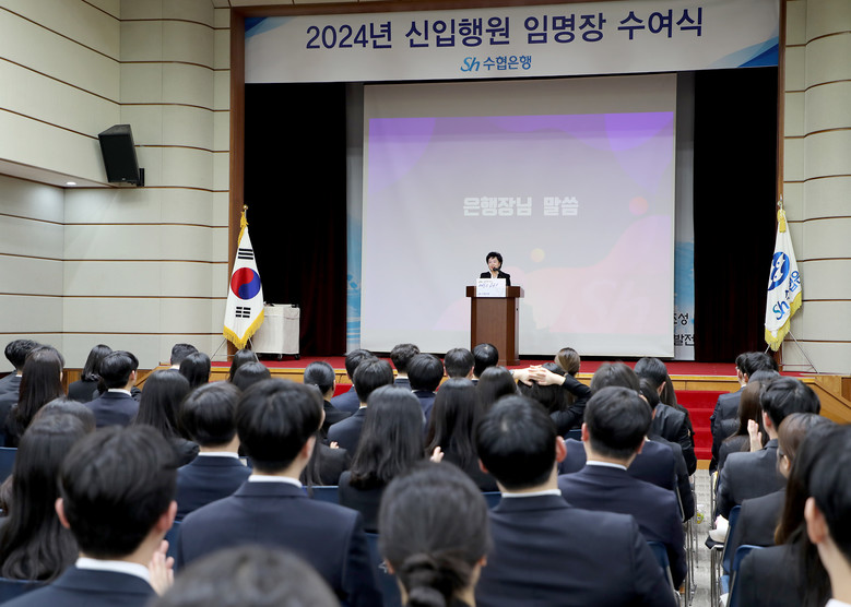 강신숙 은행장은 환영사를 통해 “오늘은 은행장이 아니라 45년 먼저 수협은행에 들어왔던 선배로 이 자리에 섰다”며 “전문성과 신뢰를 갖추고 동료, 선배들과 화합하는 열정 가득한 은행원으로 성장해 100년 수협은행의 초석이 되어달라”고 당부했다.