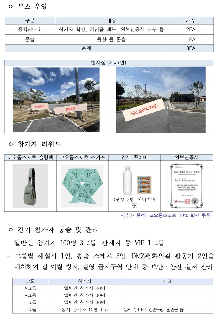 한편, 철원군은 올해 3월부터 12월까지 매주 목·토요일, 주 2회 사전예약제 걷기 프로그램을 운영하고 있다.
