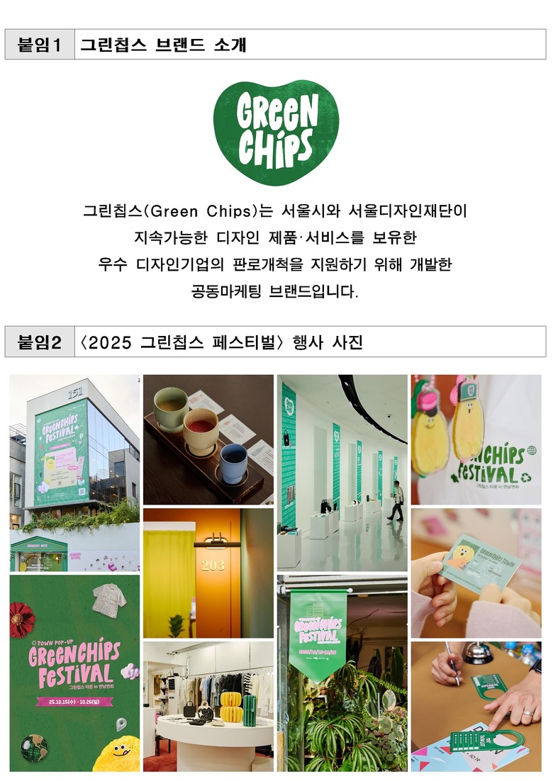 한편 시민이 일상에서 지속가능성을 체험할 수 있는 축제인 <그린칩스 페스티벌>은 행사 3년 차를 맞아 DDP, 연남·연희, 성수, 서촌 등 서울 대표 장소로 무대를 넓히며 누적 방문객 22만 명을 기록하는 등 지역·브랜드·시민이 함께하는 참여형 행사로 자리매김했다.