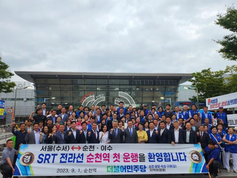 이날 행사에는 전라선 SRT 순천 첫 운행을 축하하기 위해 더불어민주당 김회재 의원과 순천 지역 민주당 도·시의원 등이 참석하였다.