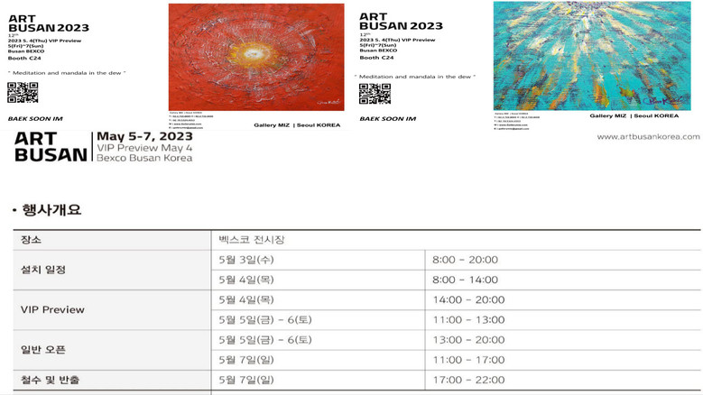[세계타임즈 백진욱 기자] 백순임 명상화 작가가 5월 5일부터 7일까지 약 3일간 부산 백스코 전시장에서 명상화의 만다라 연작 전시회를 개최한다.