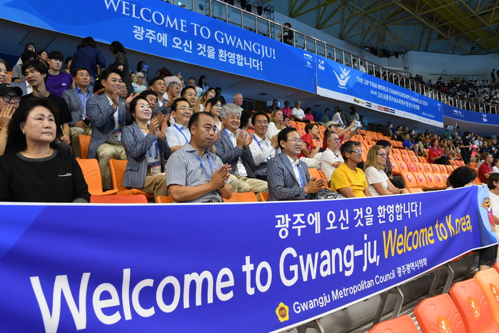 이 날 경기관람은 역대 최대 규모로 치러지는 2019광주세계수영선수권대회의 성공개최를 시의회 차원에서 적극 지원하고 대회현장관계자들의 노고를 위로하기 위해 김동찬 의장의 제안으로 이뤄졌다.