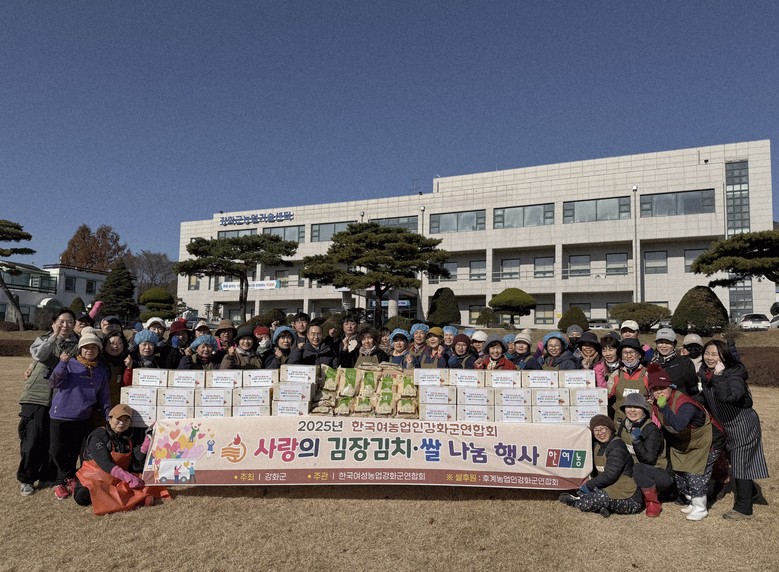 이날 행사에는 바쁜 일정 속에도 회원 30여 명이 참여해 직접 담근 김장김치 100박스를 정성껏 준비했으며, 특히 후계농업경영인강화군연합회(회장 고진우)에서 쌀 300kg를 기부해 훈훈한 나눔의 의미를 더했다. 준비된 김장김치와 쌀은 관내 어려운 이웃들에게 전달되어 연말을 맞아 따뜻한 밥상과 마음을 선물했다.