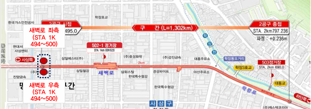 ‘H-Pile+토류판+P.C.F(∅1000) 차수공법’으로 시공된 전체 구간에 대해 「지하안전법」 제35조 규정에 따른 지반침하위험도평가를 실시할 필요가 있다.